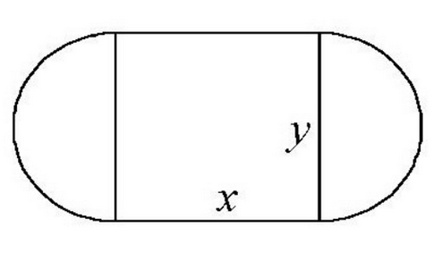 Volem dissenyar un camp de joc de manera que la part central siga rectangular, i les parts laterals siguen semicircumferències cap a fora. La superfície del camp mesura (4+\pi metres quadrats. Es volen pintar totes les ratlles de dit camp tal i com es mostra en la figura. Es demana: